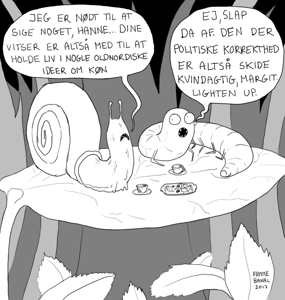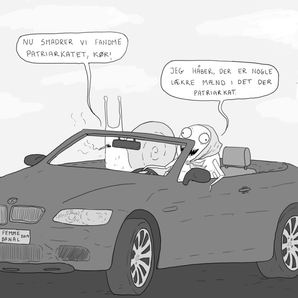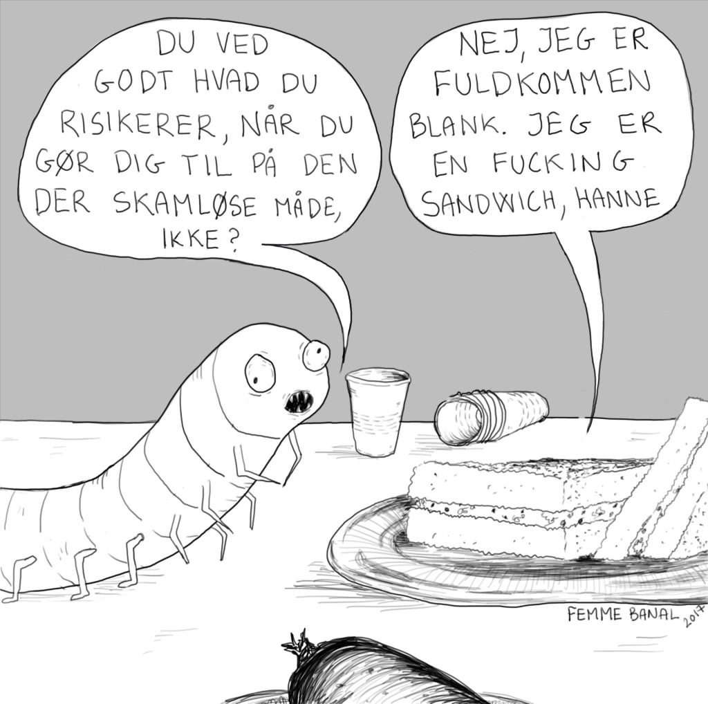Feministiske satiretegninger. Hvori især larven Hanne og sneglen Margit brillierer. Udgivet i nedenstående udtryk på instagram og facebook mellem 2017-2022.
