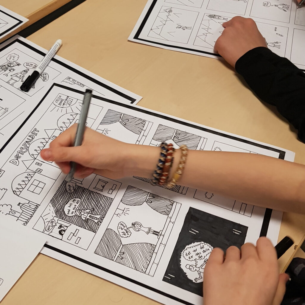 - Tegneseriers grundlæggende principper – talebobler, rammer og layout, læseretning, historiefortælling, at fortælle i billeder