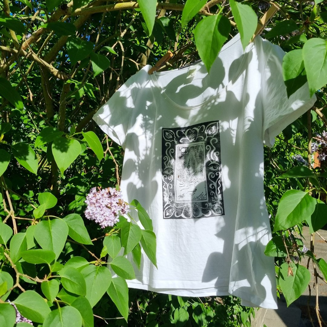 I min webshop kan du finde et lille udvalg af de tshirt med tryk som jeg sælger på markeder, festivaler og i udvalgte butikker. Alle produkter på siden er lavet med omtanke for et bevidst ressourceforbrug. Læs mere om mine principper her: bæredygtigt ressourceforbrug